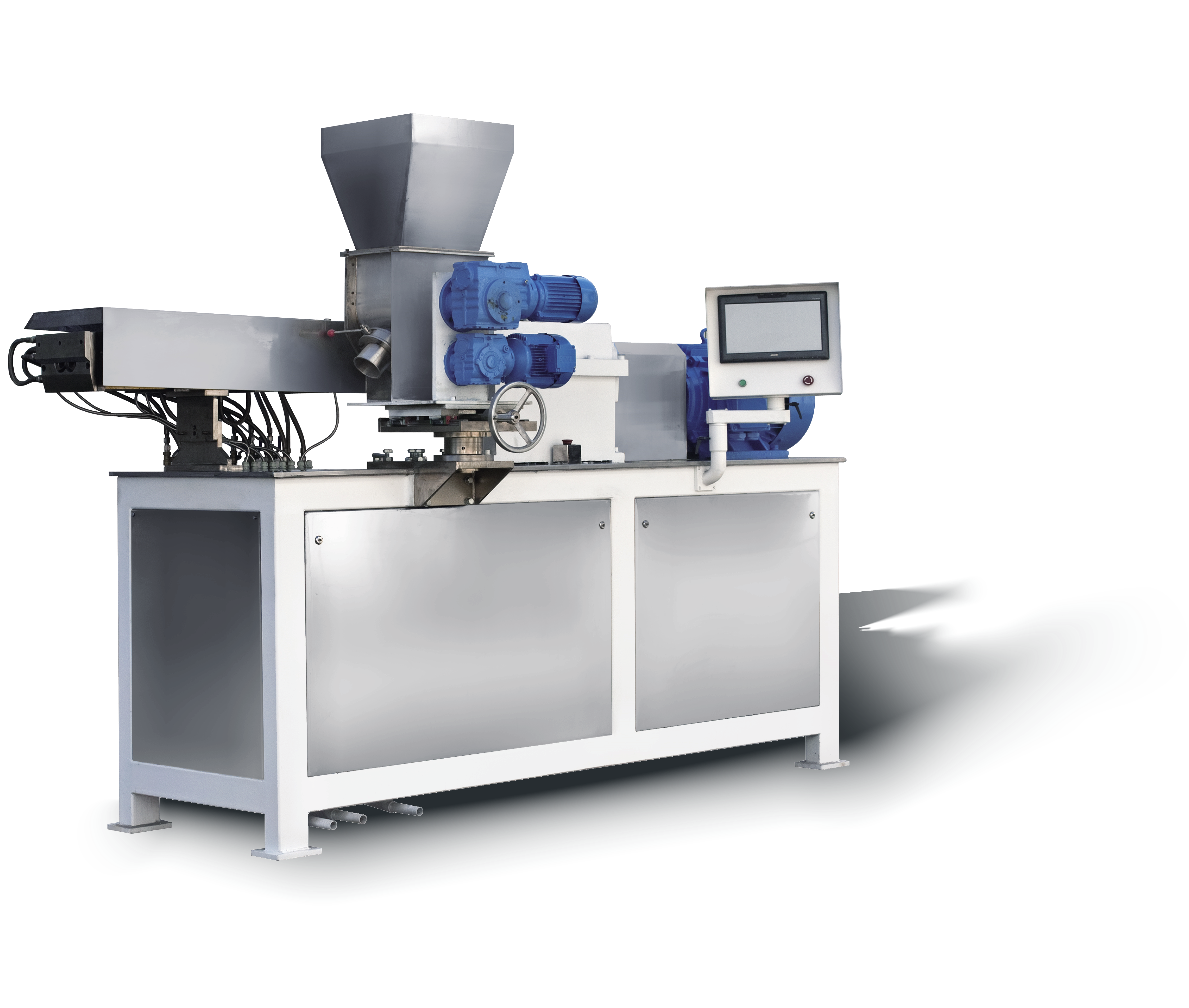 SLJ-H 系列雙螺桿擠出機SLJ-H 系列雙螺桿擠出機產量高,是擠出化學原料的設備。原料在高速旋轉精密嚙合塊的作用下,進行充分的分散和分布混合。雙螺桿擠出機是粉末涂料生產的關鍵設備。