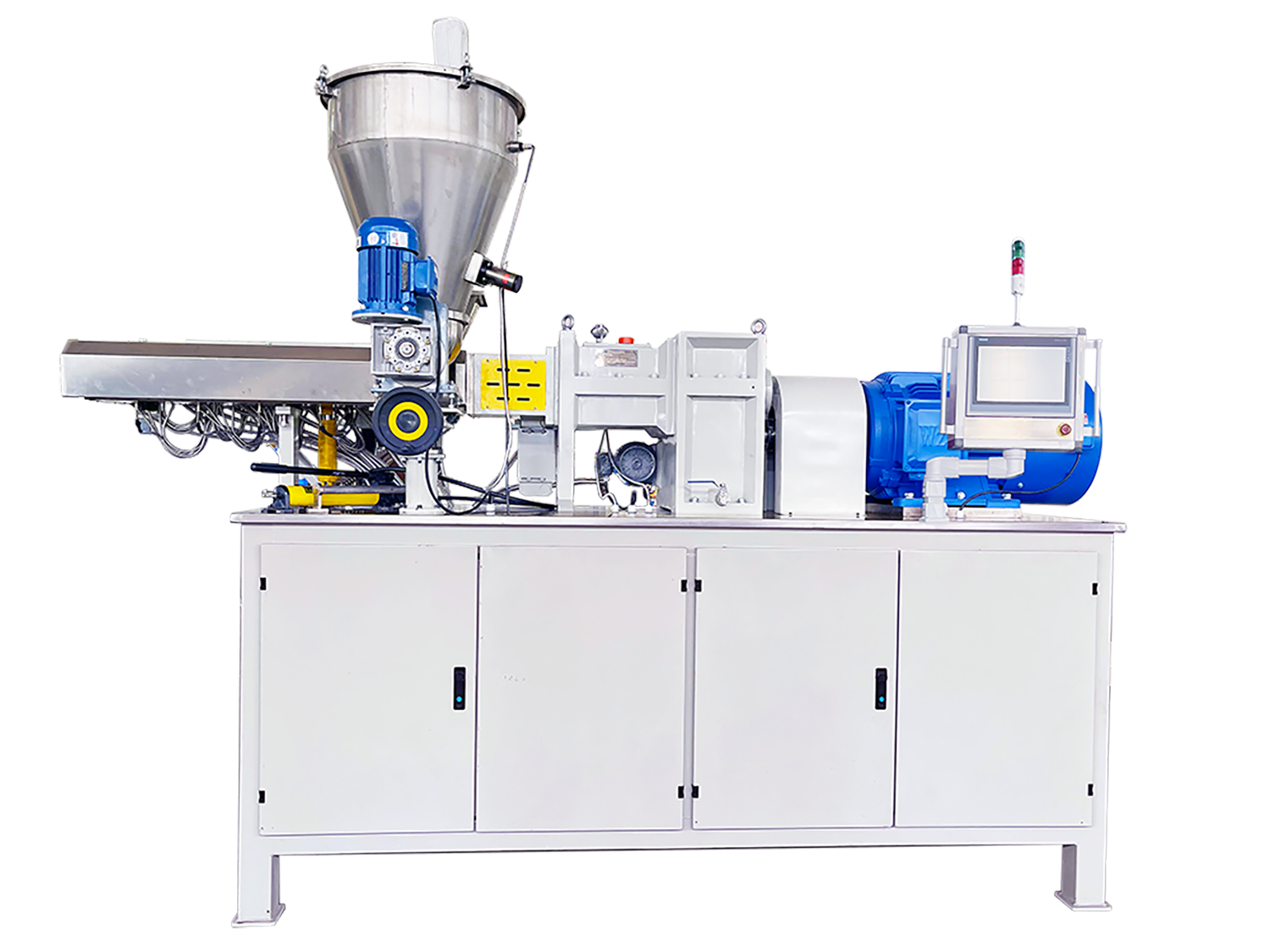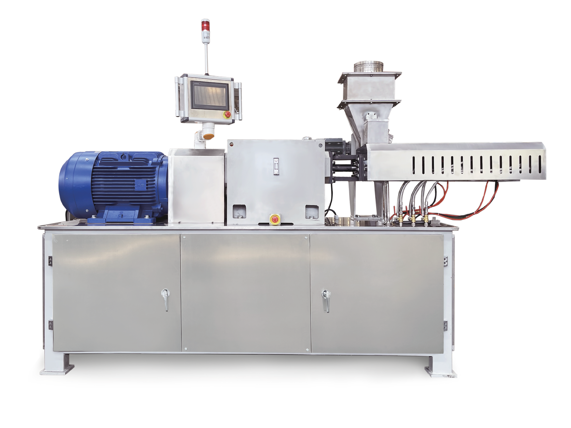 LTX系列雙螺桿擠出機LTX系列雙螺桿擠出機是公司2023年推出的新款同向旋轉雙螺桿擠出機。其具有更大的槽深比,更大的長徑比,更高比扭矩的齒輪箱,更高的螺桿轉速和雙螺桿側向喂料,這些技術的應用,保證高速旋轉精密嚙合塊的作用下,物料在更低的溫度下進行充分的分散和分布混合,滿足更高要求的產品需求。